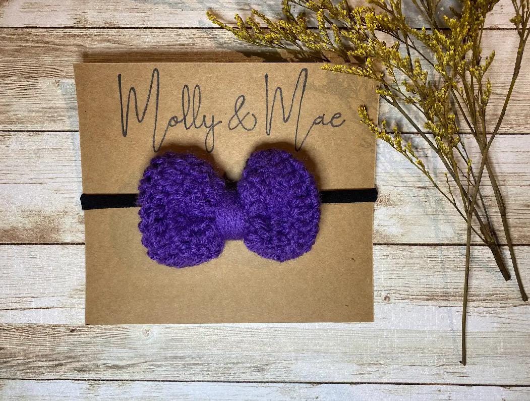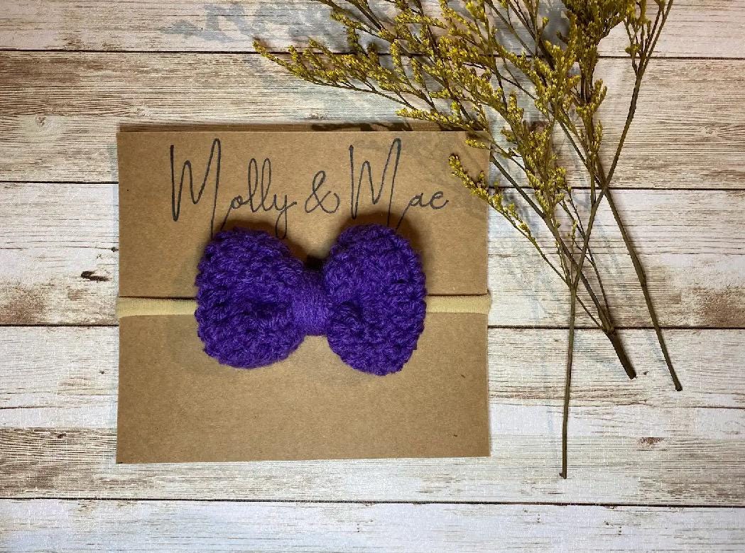 Embrace timeless elegance with these handcrafted crocheted Indigo bows! Meticulously crafted with soft, high-quality acrylic yarn, on a silver metal alligator clip, or Nylon Headband these bows offer a charming and versatile accessory for any occasion. Perfect for adding a pop of color to your hair! Or get creative and add them to your clothing, or even as a delightful embellishment on a gift! These bows can be both stylish & functional.