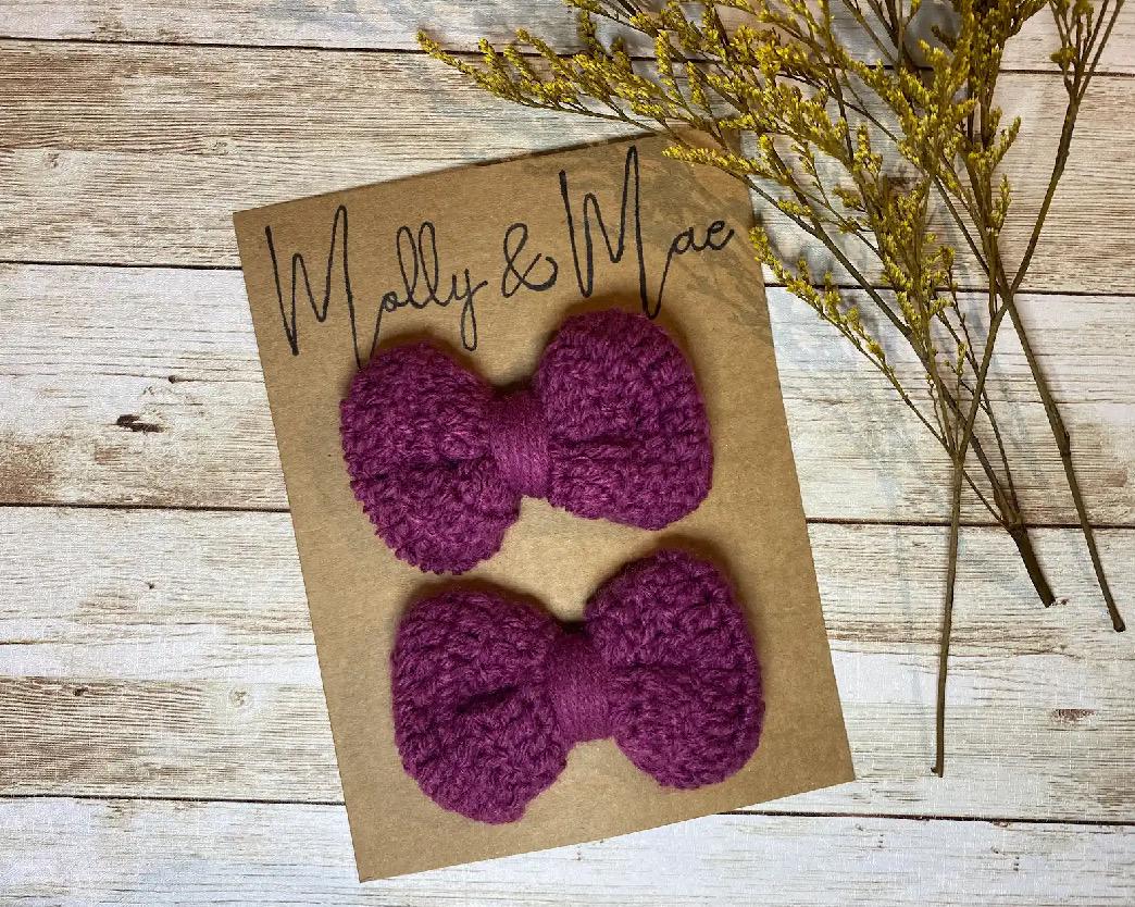 Embrace timeless elegance with these handcrafted crocheted cranberry bows! Meticulously crafted with soft, high-quality acrylic yarn, on a silver metal alligator clip, or Nylon Headband these bows offer a charming and versatile accessory for any occasion. Perfect for adding a pop of color to your hair! Or get creative and add them to your clothing, or even as a delightful embellishment on a gift! These bows can be both stylish & functional.