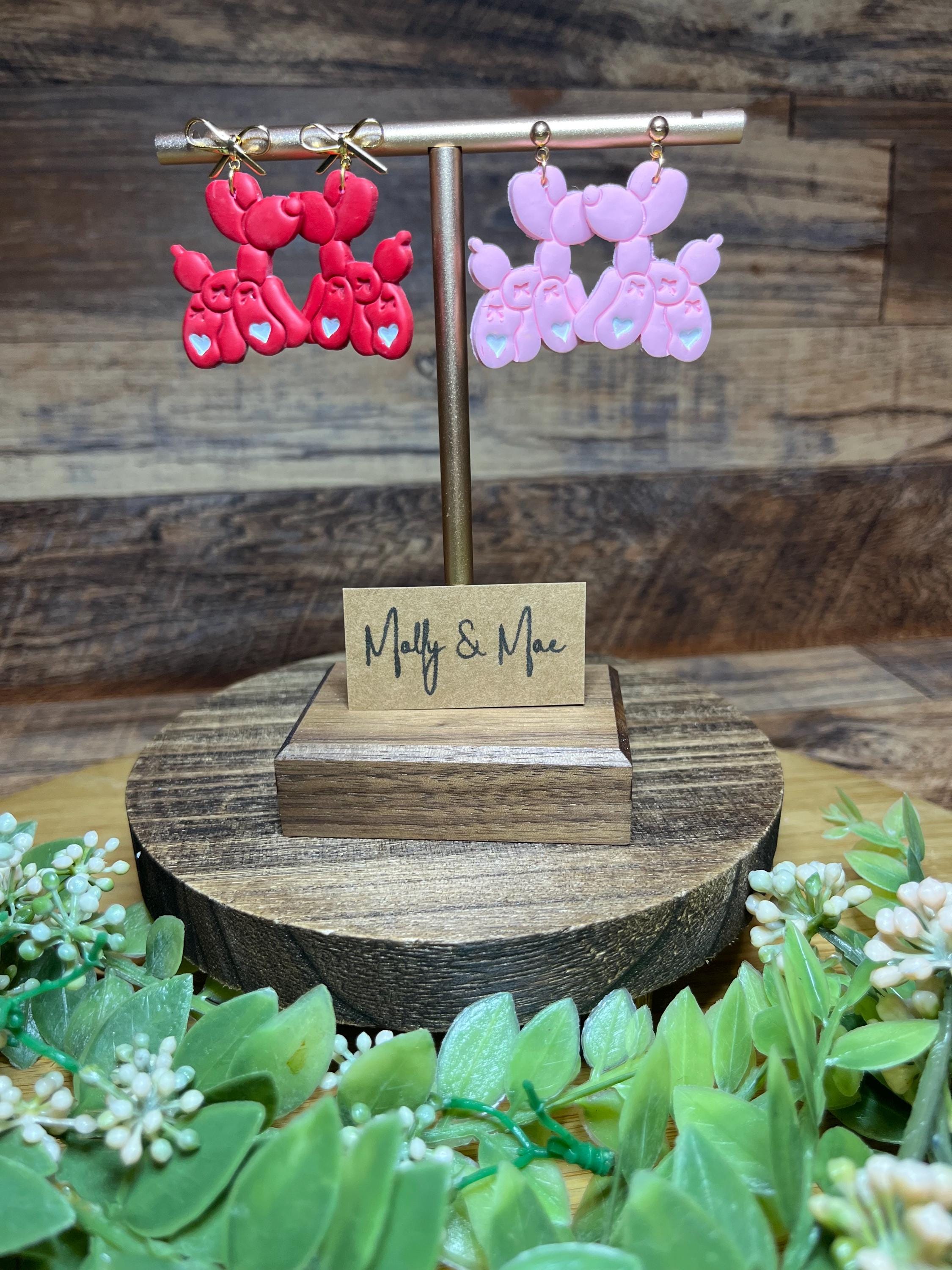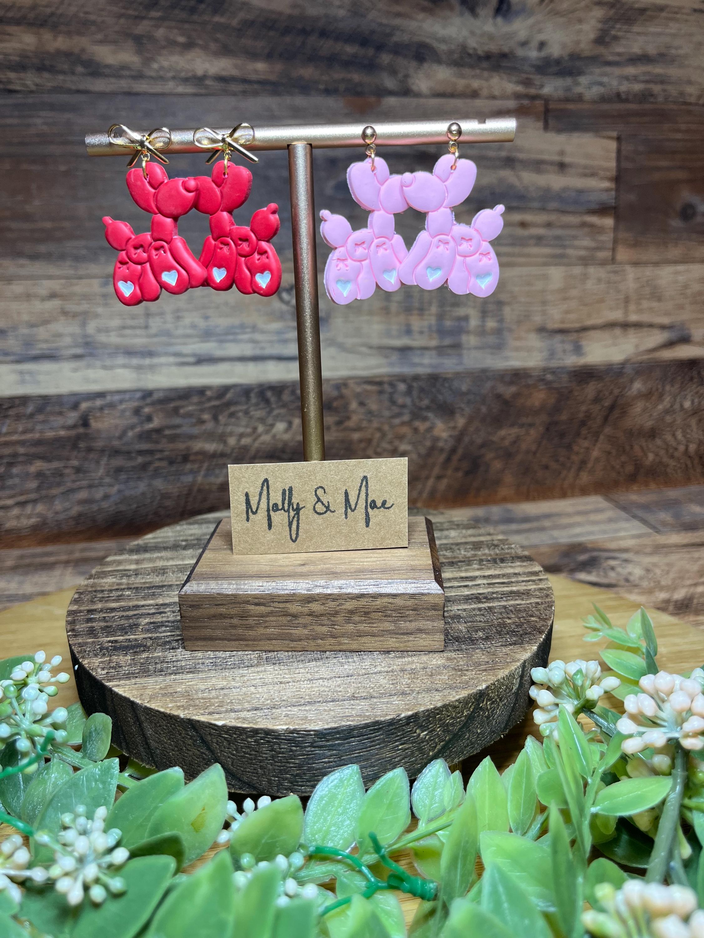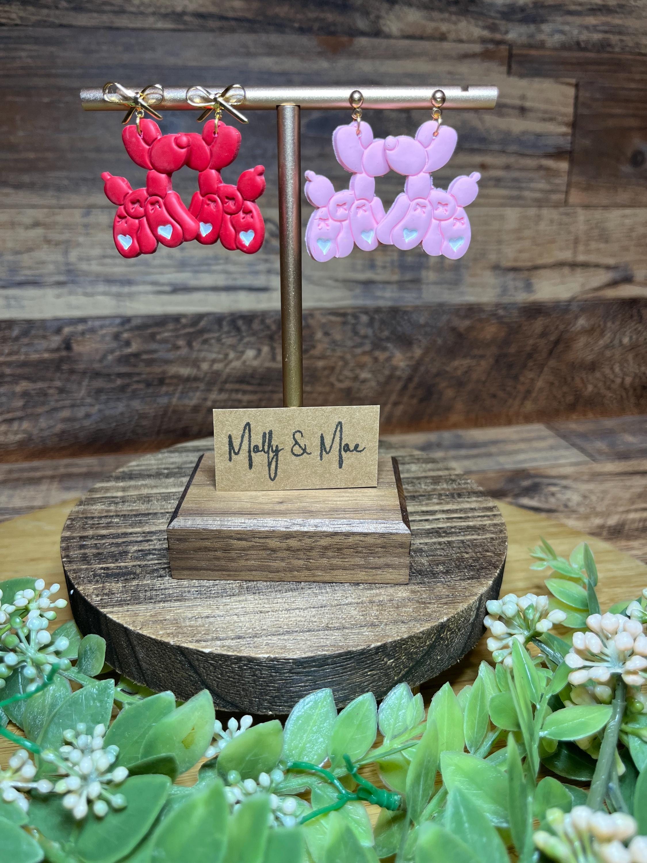 - Design: Each earring mimics the shape of a delightful balloon dog, crafted with precision to highlight its whimsical form. Available in two color options, and two stud options, these earrings bring a fun and lively element to any look.